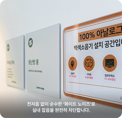 백색소음기 설치로 집중력을 높이고 잡음을 차단하여 학습효율을 향상시킵니다.