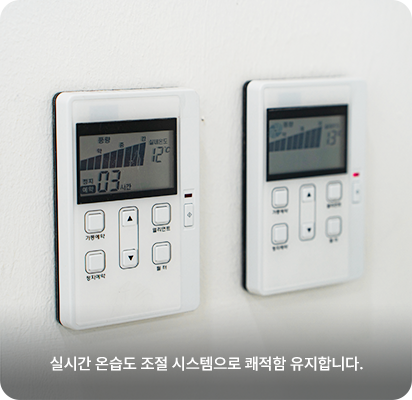 온습도 관리와 정기 환기, 공기청정 시스템으로 쾌적한 환경을 조성하고, 적절한 조명으로 집중력을 높입니다.