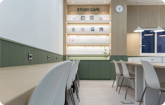 조도·소음·공조까지 학습 친화적으로 설계한 오픈형 휴식·학습 복합 공간입니다.